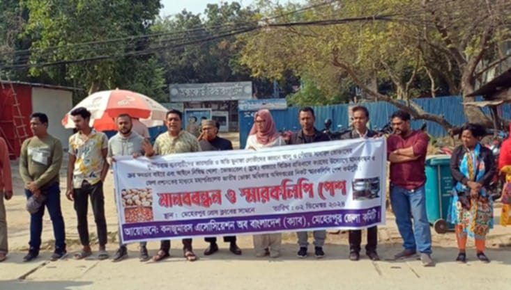 মানববন্ধনে আরও উপস্থিত ছিলেন ক্যাব সদস্য ও মেহেরপুর প্রেসক্লাব সভাপতি ফজলুল হক মন্টু, যুগ্ম সাধারণ সম্পাদক বেন ইয়ামিন মুক্ত, ক্যাব গাংনী উপজেলা শাখার সাধারণ সম্পাদক মাহবুব আলম, ক্যাব সদস্য প্রদীপ ও দিলারা জাহান প্রমুখ।