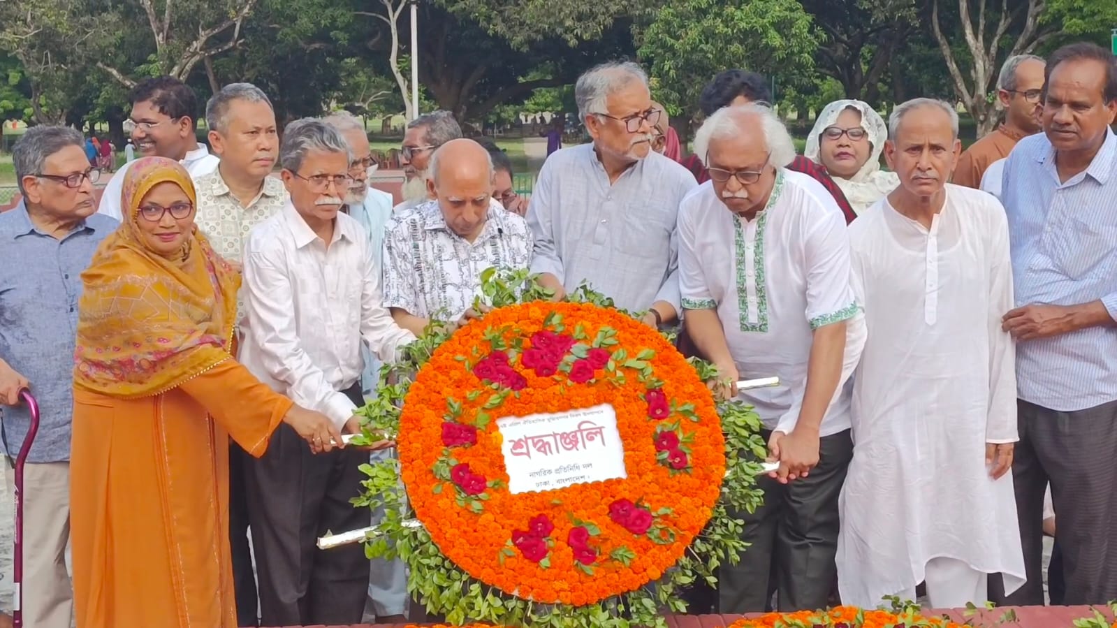 আজ শুক্রবার দুপুরে মুক্তিযোদ্ধা, সাংবাদিক ও লেখক আবু সাইদ খানের নেতৃত্ব নাগরিক সমাজের একটি প্রতিনিধি দল মুজিবনগর স্মৃতিসৌধে পুষ্পমাল্য অর্পণ করেন।