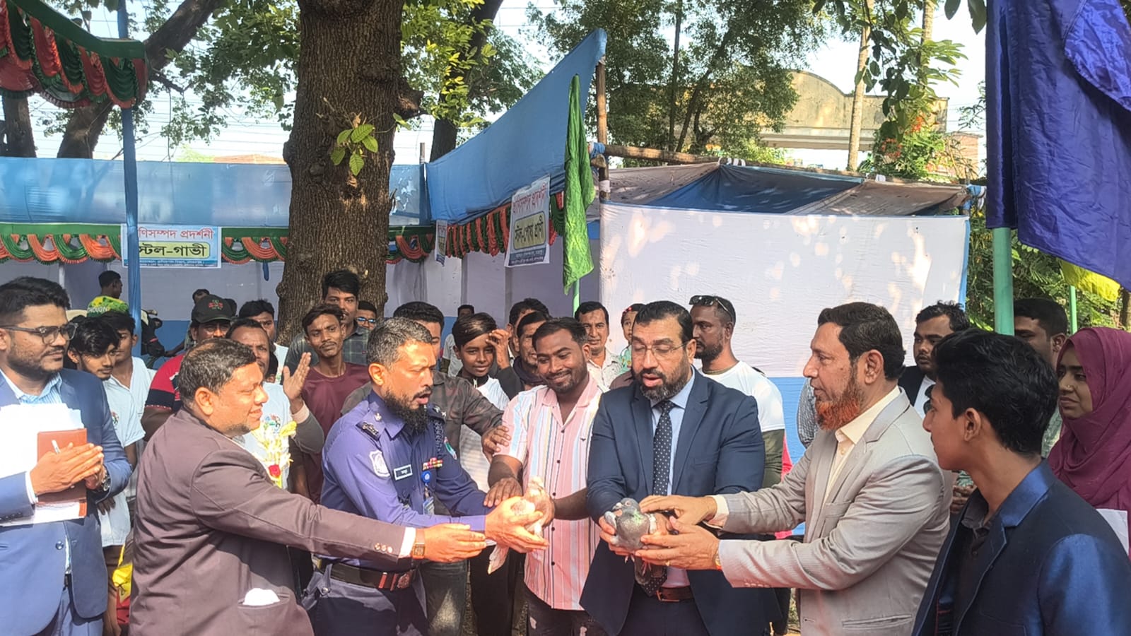 প্রদর্শনীতে উদ্যোক্তা ও খামারীরা ৩০টি স্টলে গরু, ছাগল, ভেড়া, হাঁস-মুরগী ও কবুতরসহ বিভিন্ন প্রাণী প্রদর্শন করে।